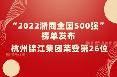 “2022浙商全国500强”榜单发布 杭州锦江集团荣登第26位 6月16日,以“聚力高质量 聚合共富力”为主题的2022浙商全国500强..