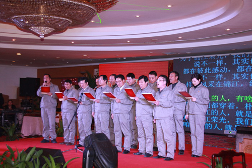 2012年迎新春联欢会在欢快动感的歌曲串烧中拉开了序幕,随后闪亮登场的各个节目更是精彩纷呈。舞蹈《释放》阳光靓丽、激情四射;民歌独唱《圪梁梁》、《你是我的眼》原汁原味、穿透力强;乐器独奏《卡农》、《高山流水菊花台》青春活力、柔美婉转;合唱《咱锦江的人》大气激昂、催人奋进;诗歌朗诵《兴安之歌》感人肺腑、回味悠长;双簧相声小品《双簧闹新春》、《给我一个名额》、《查岗》、《锦江红》等诙谐讽刺、笑声不断;反串舞蹈《大姑娘美大姑娘浪》耳目一新、喝彩满堂……联欢会尾声,集团领导合唱的《好汉歌》铿锵有力、振奋人心,给观众留下美好的回忆。整场联欢会在《明天会更好》气势恢弘的旋律中圆满落下帷幕。