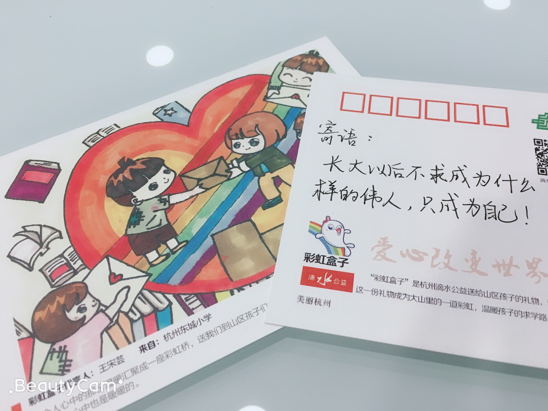 千份贺卡,千万步伐,千千万的善意,滴水公益也备感触动,赠予杭州锦江集团捐赠奖杯。接下来,滴水公益,将把这些温暖寄往山区的孩子们手中。